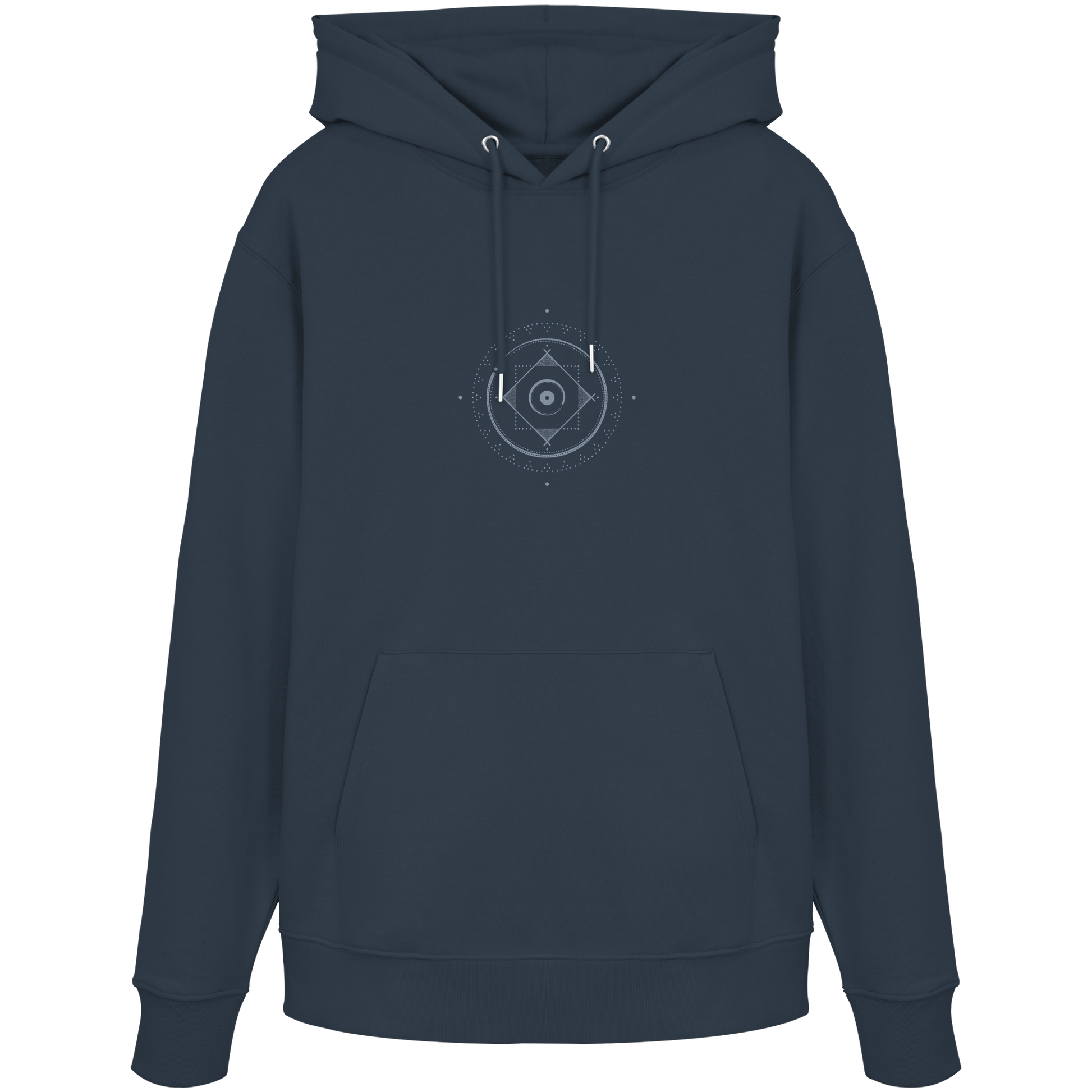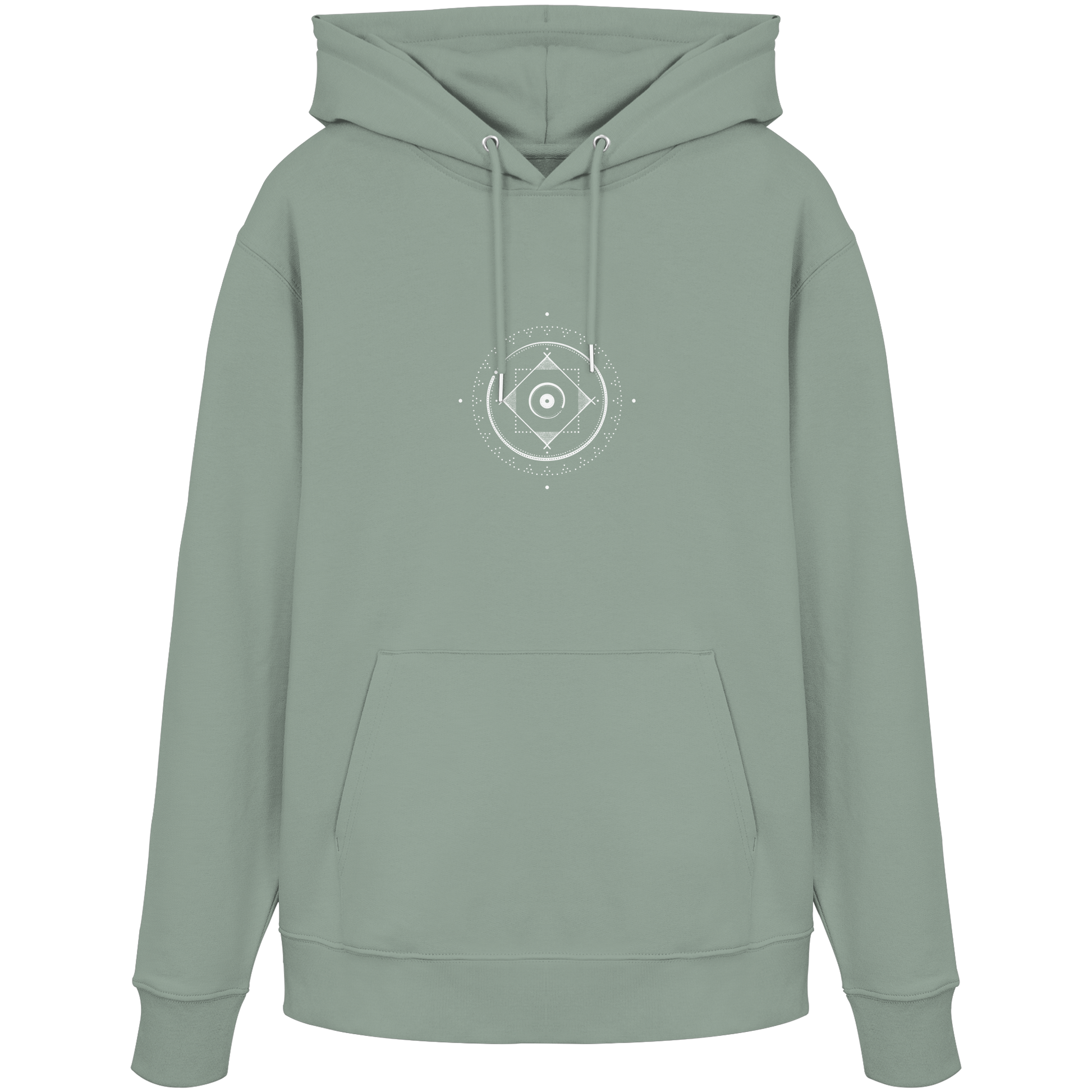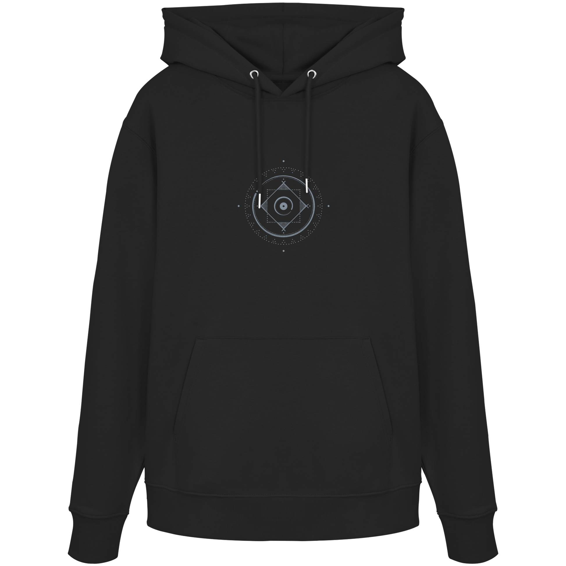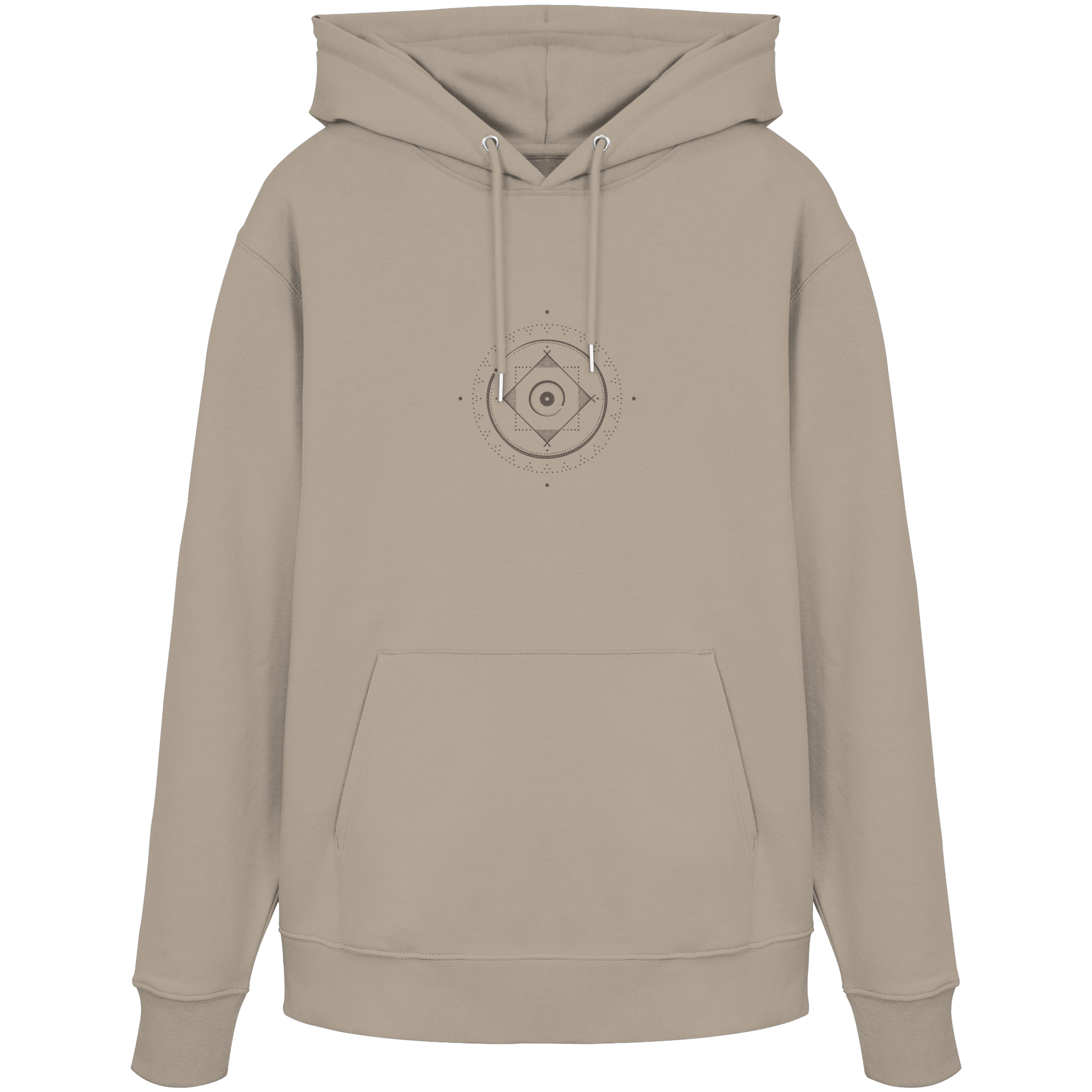 Entdecke deine Verbindung zum Universum mit dem Hoodie Exosphäre. Das handgezeichnete Dotwork-Design auf dem Rücken symbolisiert die Weite des Kosmos – getragen auf hochwertiger Bio-Baumwolle mit 350 g/m². Ein Hoodie für bewusste Menschen, die spirituelle Kleidung für Männer und Frauen suchen.