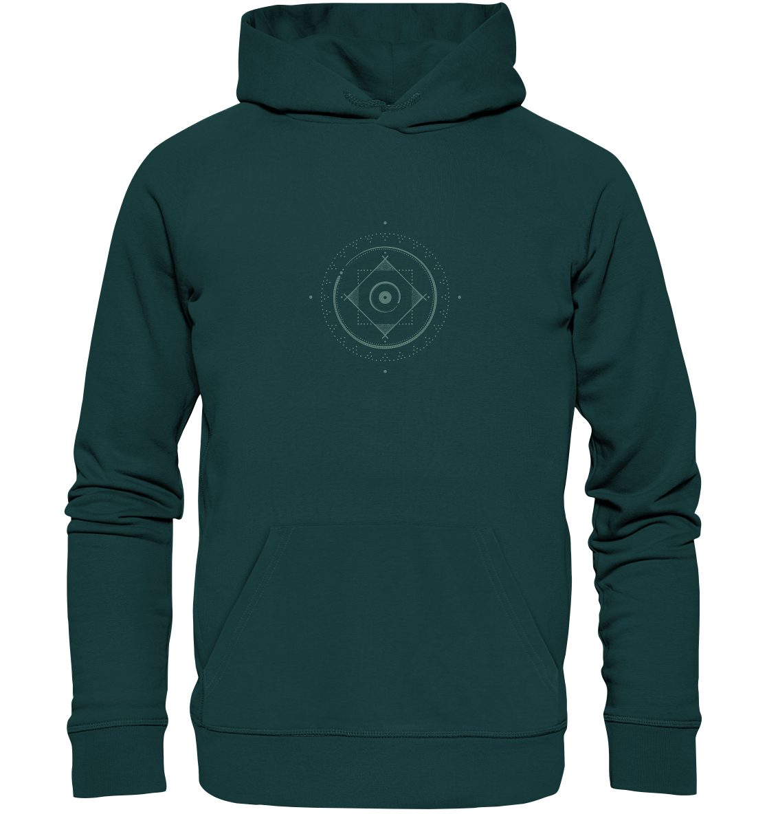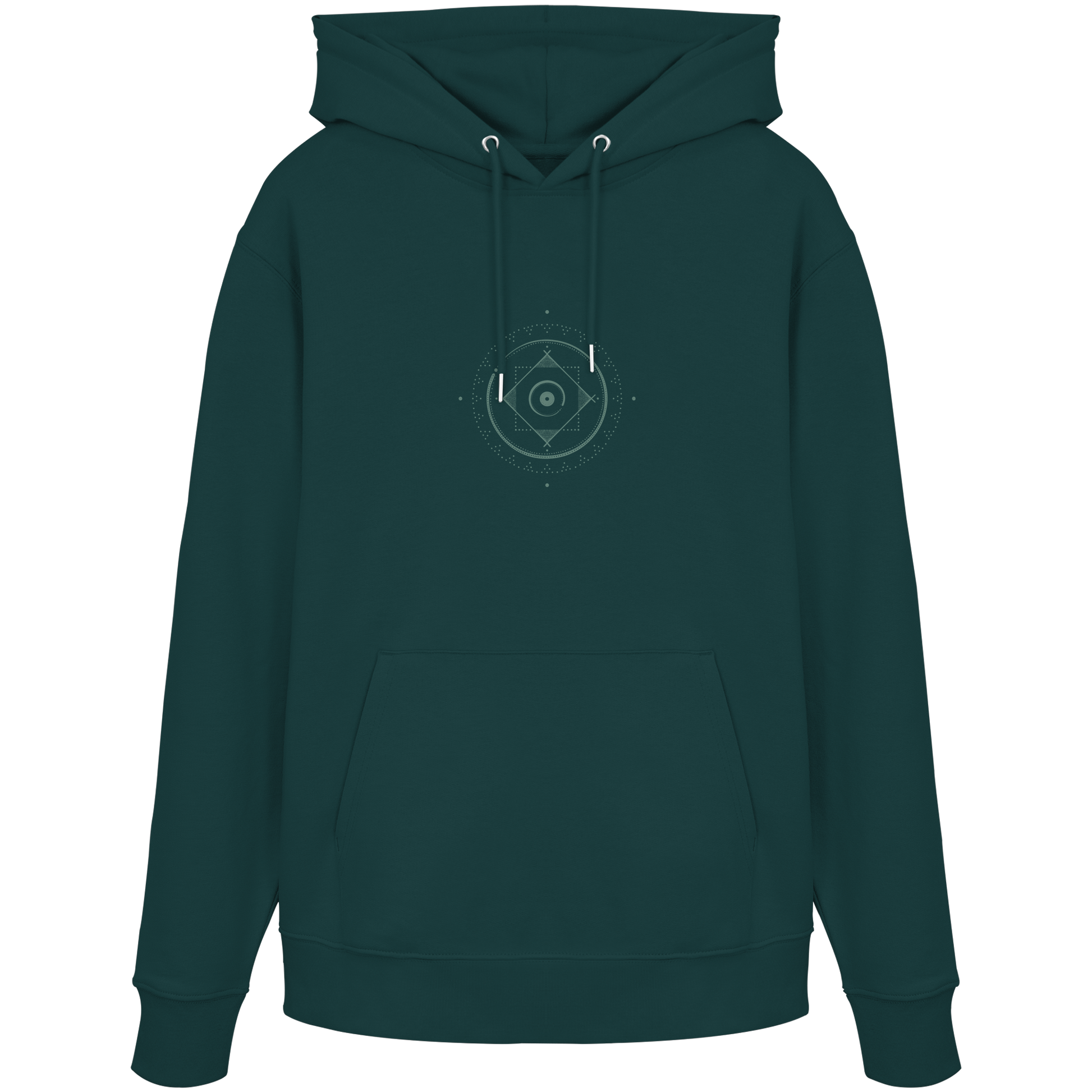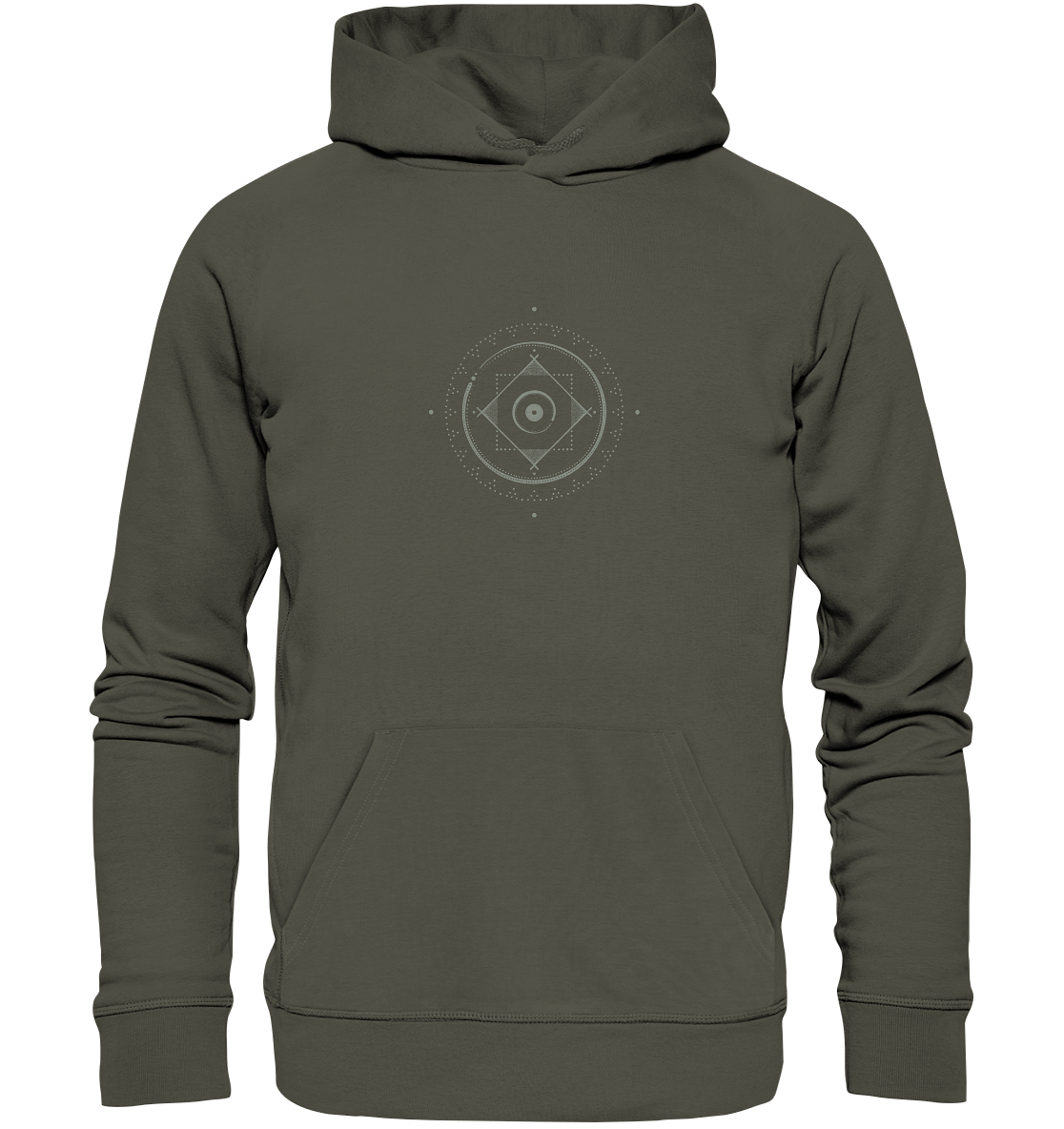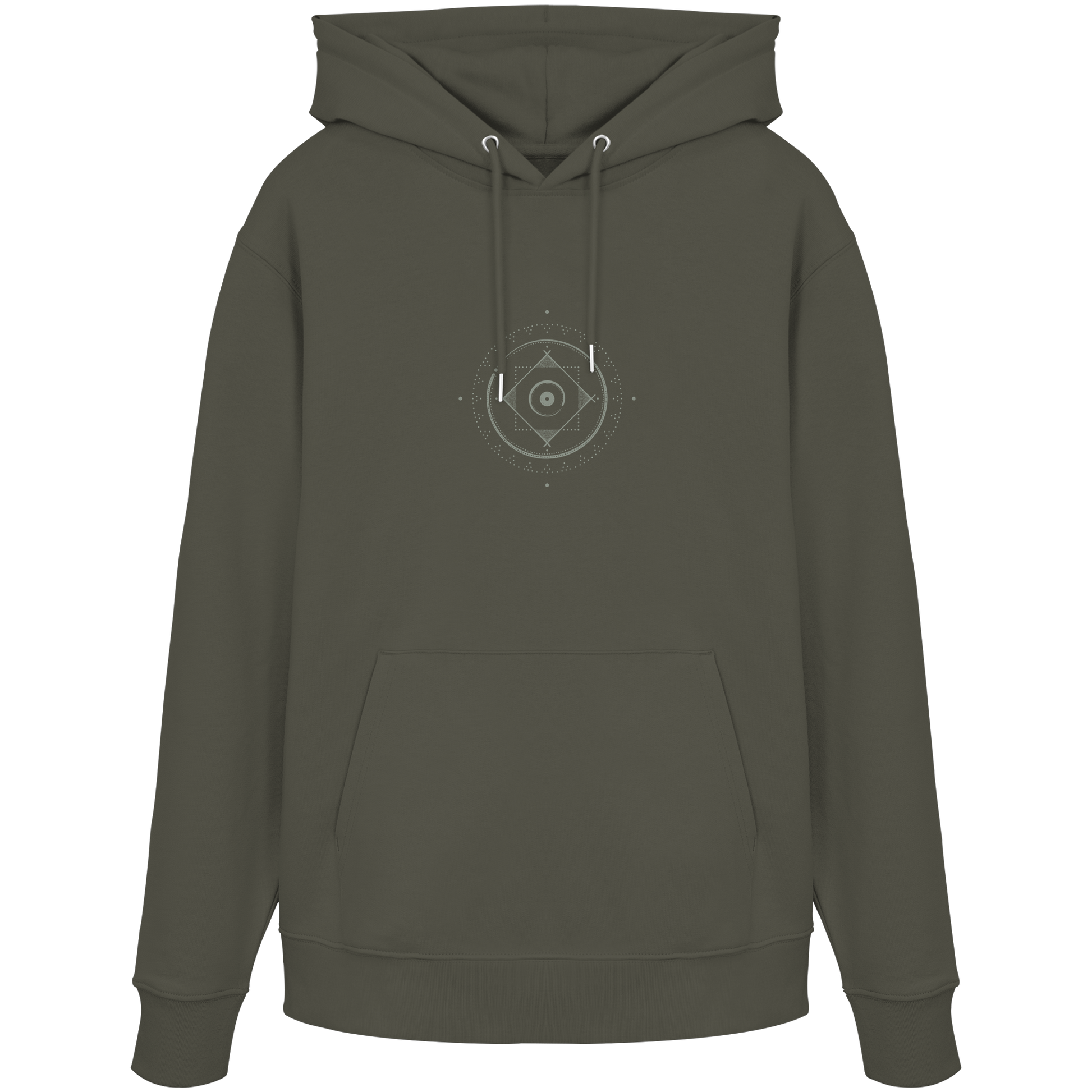 Entdecke deine Verbindung zum Universum mit dem Hoodie Exosphäre. Das handgezeichnete Dotwork-Design auf dem Rücken symbolisiert die Weite des Kosmos – getragen auf hochwertiger Bio-Baumwolle mit 350 g/m². Ein Hoodie für bewusste Menschen, die spirituelle Kleidung für Männer und Frauen suchen.