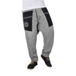 The harem pants for men are elegant and fancy at the same time. The Hippie Pants are flecked grey and have large square pockets in black, as well as an embroidered mandala on the left pocket.