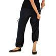 Practical pants in black with a drawstring at the sides to wear the pants short as 3/4 pants or as long pants.