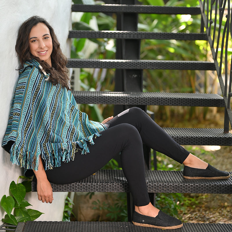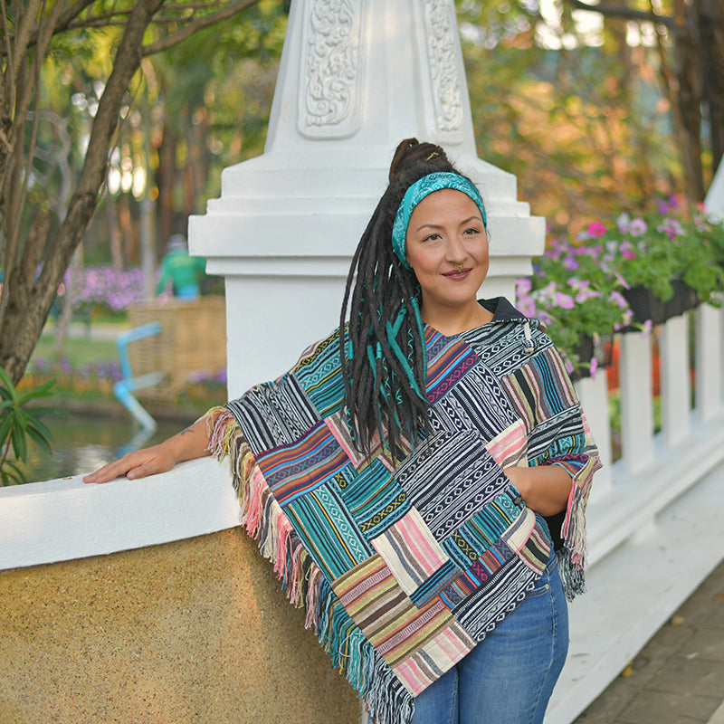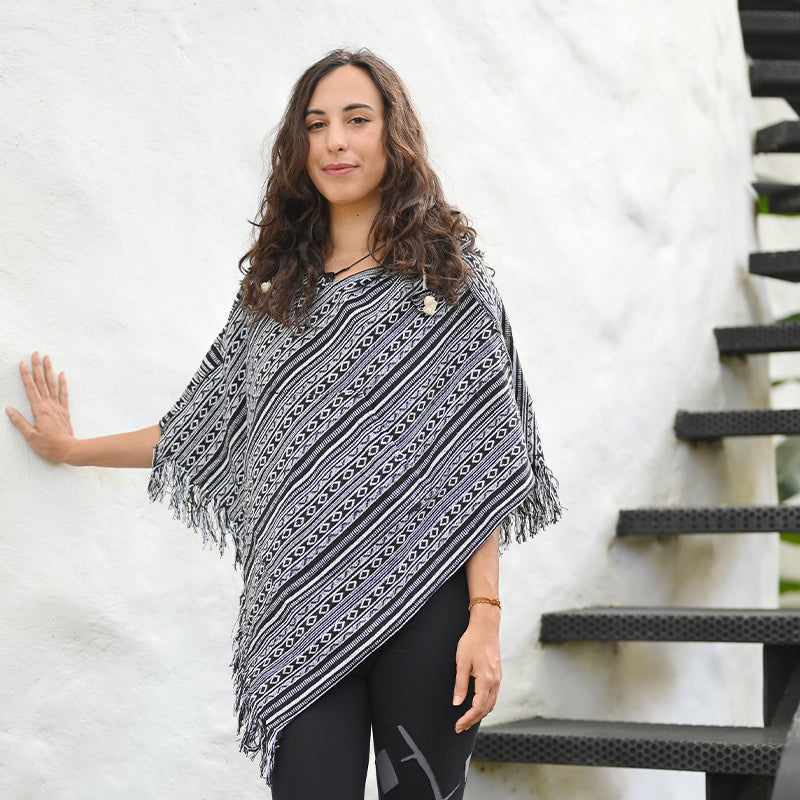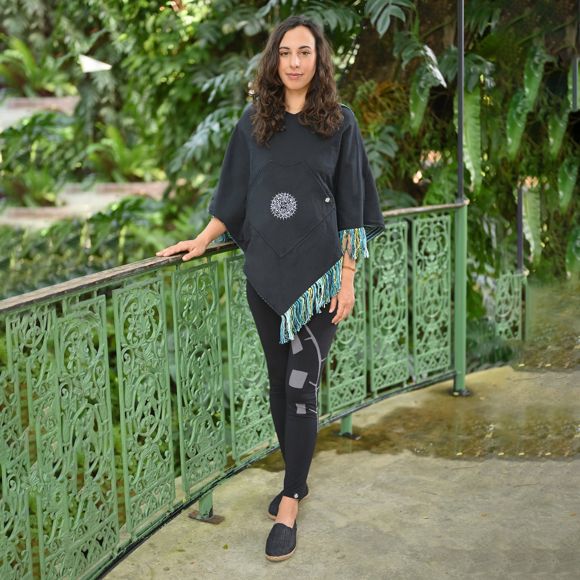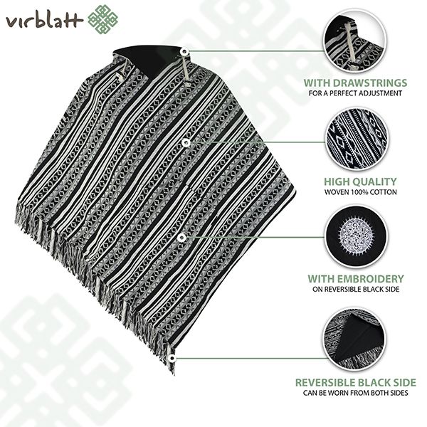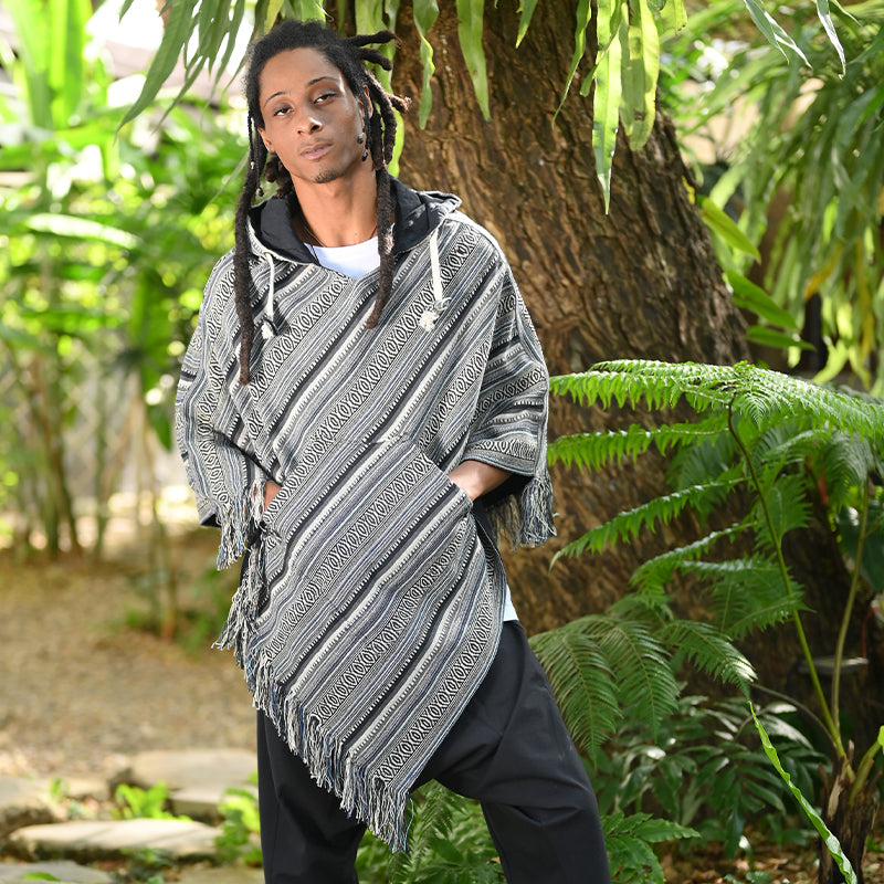This stylish Mexican hippie poncho wrap for men is reversible and can be worn on both sides. Depending on your mood, one side is black flecked, while the other side is plain black with a pocket that showcases a traditional embroidered Mandala. The ethnic men's baja poncho is made of 100% cotton, making it the perfect alternative clothing for any season. These hippie ponchos are guaranteed to feel cozy like a blanket and keep you warm during cool festival days. The traditional hooded poncho for men is currently popular as a summer poncho, but it is also perfect during the winter. The traditional black men's Baja blanket will keep you stylish for any party or event, so make sure to keep one of these trendy hippie ponchos in your closet.
