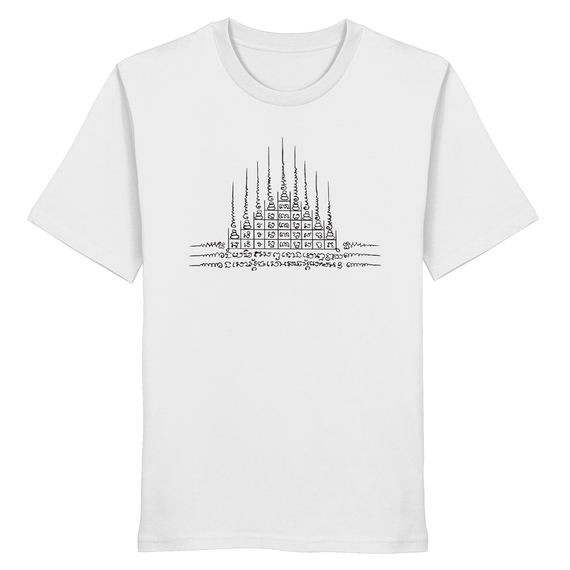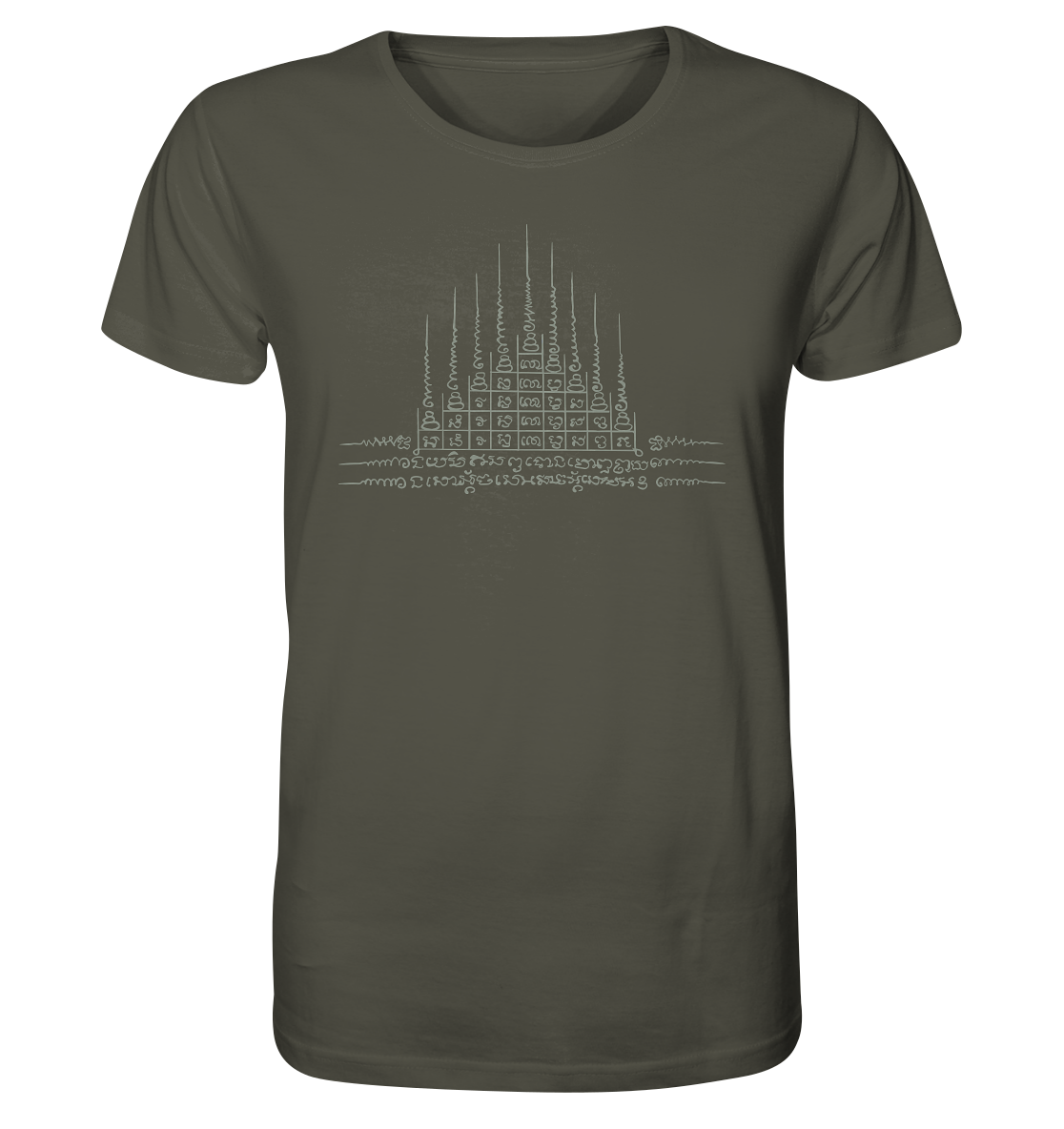 Das T-Shirt Gao Yord trägt eines der kraftvollsten Symbole aus der thailändischen Sak Yant-Tradition – ein Muster, das für Schutz, Klarheit und spirituelle Ausrichtung steht. Die neun Spitzen des Yantras symbolisieren Weisheit, Stärke und den Weg zur inneren Entfaltung.