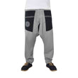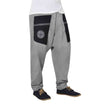 The harem pants for men are elegant and fancy at the same time. The Hippie Pants are flecked grey and have large square pockets in black, as well as an embroidered mandala on the left pocket.