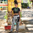 The hippie trousers Men Mondlandung is a harem trousers with a light medium deep cut and black square pockets. The harem trousers are super comfortable to wear and can be perfectly combined with a Baja jacket or a hippie poncho.