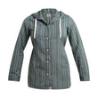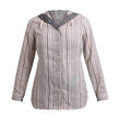 This range of boho shirts for women are made from cotton. We selected a lightweight and comfortable 100% cotton fabric with colorful stripes to create this ethical fashion collection Hippieness. The hippie shirts have a button up drawstring hoodie. These women´s hippie shirts for are available in size S, M, L, and in brown, green and grey. These easy to wear long sleeve shirts with hoodies were made for the easy going adventurer who loves travel, exploring nature and enjoying a relaxing day at the beach. Their versatile styling elements make them popular wardrobe options for your bohemian style and hippy lifestyle. Feel confident in our carefree conscious clothing, made by small family run businesses who care for who you are.