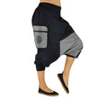 We have designed these cropped harem pants for the trendy and easy-going man. They are color coordinated with two contrasting colors and have elasticated cuffs and a waist which is also accompanied by belt loops. These harem shorts have a decorative blacket and two closable side pockets to make these hippie clothes for men and women, both quirky and practical.