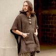 This stylish woolen hippie poncho wrap in brown is super comfortable and keeps you perfectly warm on cold days. The poncho is made from the highest quality material, with natural untreated sheep wool from New Zealand on the outside and warm polar fleece on the inside making it the perfect alternative clothing for any season. These hippie ponchos are guaranteed to feel cozy like a blanket and keep you warm during cool festival days. The traditional hooded poncho for men is exactly what you need for the cold days. It features wood buttons and drawstings at sleeves and collar and a front pocket.